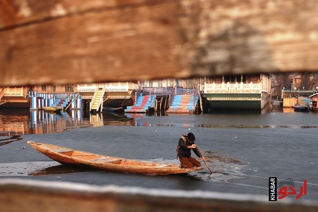 سردی کی لپیٹ میں جمے ‘جھیل ڈل’ کی کچھ دلکش تصاویر