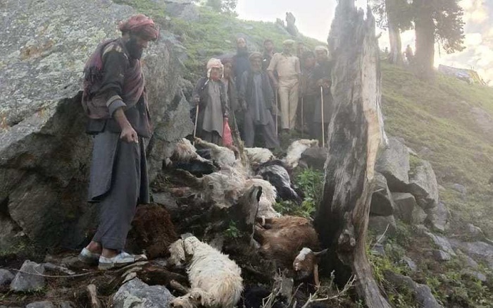 خبراردو: صوبہ جموں کے خطہ چناب میں گوجر بکروال طبقے پر اس وقت قیامت ٹوٹ پڑی جب ان کے مال کے جھنڈ پر آسمانی بجلی گرآئی جس کے نتیجے میں جھنڈ میںشامل170بھیڑ بکریاں لقمہ اجل بن گئے ۔