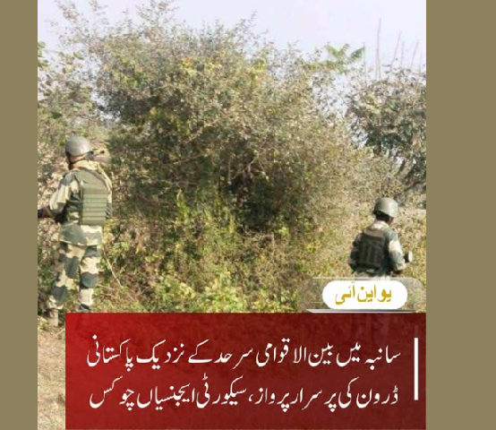 ذرائع نے بتایا کہ ڈرون رات دیر گئے پاکستان کی جانب واقع چک بھورا پوسٹ سے بھارتی حدود کی طرف آتا ہوا دیکھا گیا۔ گراؤنڈ چوکی پر تعینات بی ایس ایف اہلکاروں نے اس کی نقل و حرکت کو فوری طور پر نوٹ کیا، تاہم ڈرون نے بھارتی حدود میں داخل ہو کر محض چند منٹ تک پرواز کی اور پھر زیرو لائن پار کرتے ہوئے واپس چلا گیا۔ اس دوران علاقہ میں گشت اور نگرانی میں مصروف سیکیورٹی اہلکاروں کو ہائی الرٹ پر رکھا گیا۔