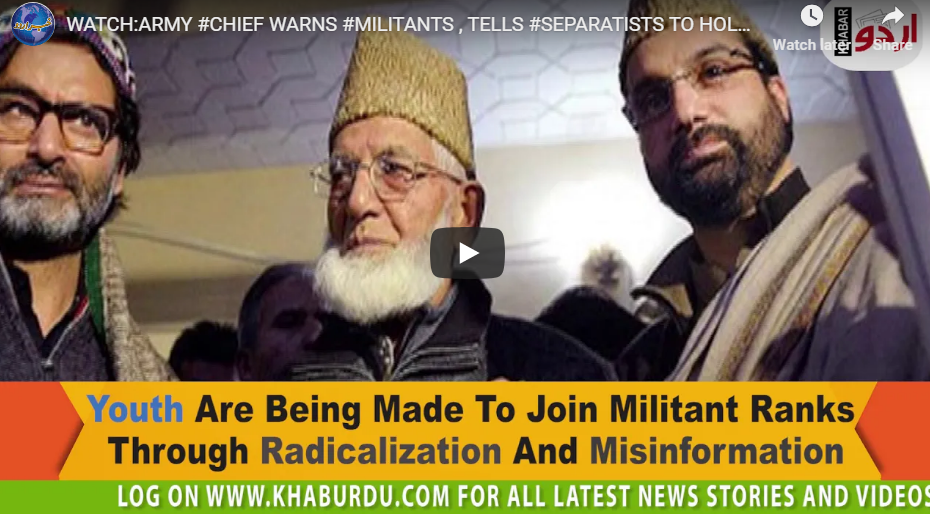 خبراردو: بھارتی فوج کے سربراہ جنرل بپن راوت نے وادی میں جنگجوؤں کو پیغام دیا ہے کہ وہ سرینڈر کر ے اور وہیں علیحدگی پسند لیڈران...