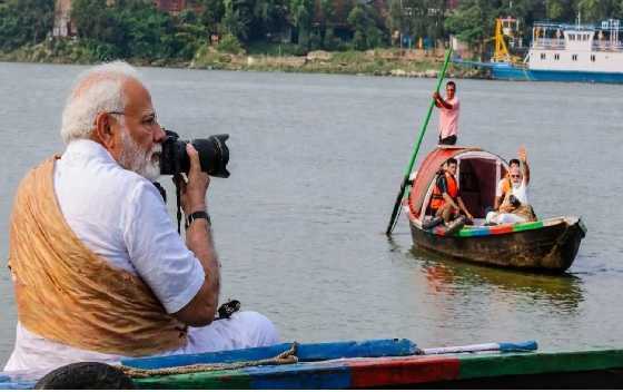 مودی نے دریائے ہگلی میں کشتی میں سواری کی اور فوٹوگرافی کا لطف اٹھایا
