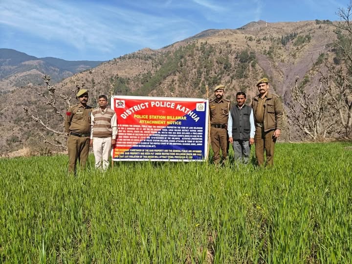 ایک پولیس ترجمان نے اپنے ایک بیان میں کہا کہ کٹھوعہ پولیس نے ایس ایس پی کی مجموعی نگرانی میں پولیس اسٹیشن بلاور کے حدود میں پاکستان میں مقیم دہشت گرد ہینڈلر کی غیر منقولہ جائیداد کو ایڈیشنل سیشن کورٹ جموں کے احکامات کی تعمیل میں ضبط کر لیا۔